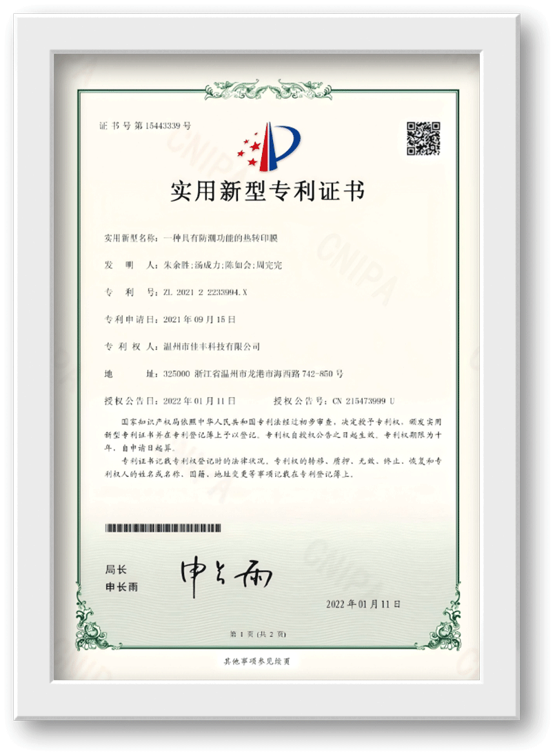 التزامًا بطلب السوق، أنشأت الشركة تدريجيًا نظامًا شاملًا مغلق الحلقة يشمل أبحاث السوق وتطوير مشاريع المنتجات الجديدة وإنتاج التجارب على دفعات صغيرة والإنتاج الضخم على نطاق واسع. ومن خلال الاستفادة من الإنجازات التكنولوجية المستمرة، أطلقت الشركة أفلام طباعة نقل الحرارة متعددة التأثيرات المناسبة للمواد البلاستيكية مثل ABS وAS وPS وPC وPP وPET، بالإضافة إلى الزجاج والفولاذ المقاوم للصدأ. كما نجحت أيضًا في تطوير تقنية نقل الحرارة المناسبة للأسطح المعالجة خصيصًا مثل الخشب والخيزران.